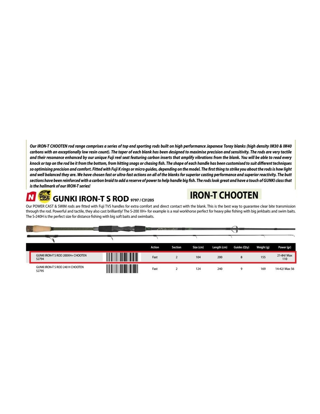 GUNKI CANNE SPINNING IRON-T CHOOTEN S 200XH+